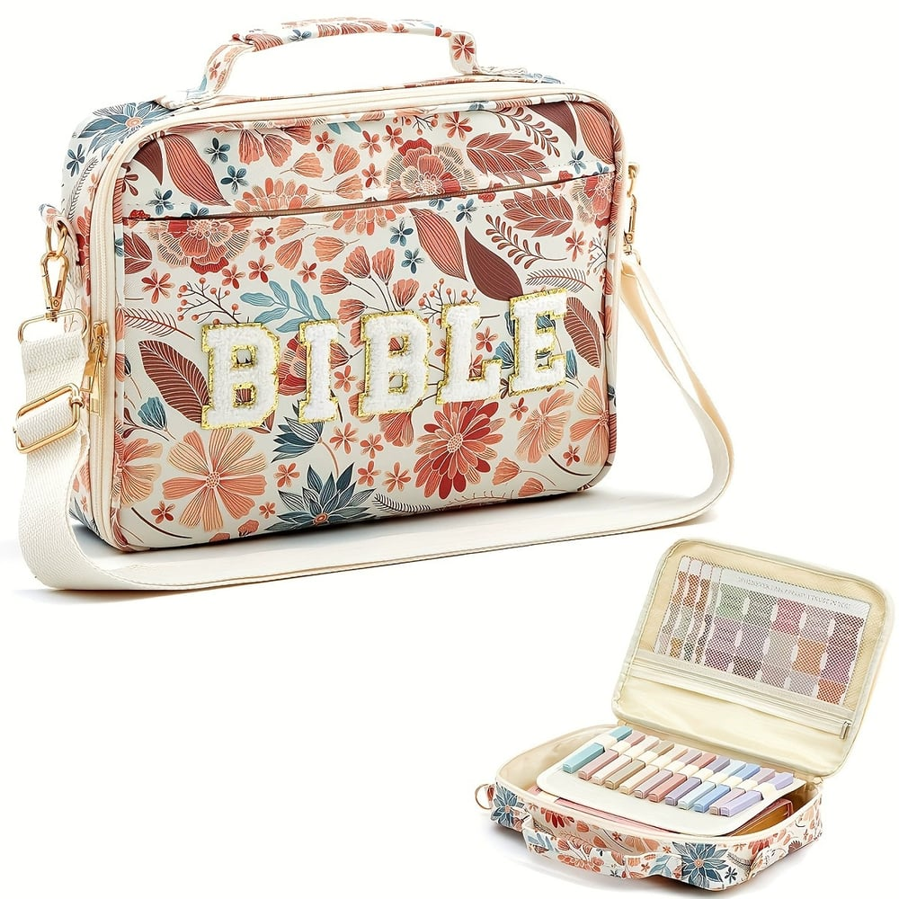 💖🌸 Pretty Bible Bag for Women – Floral Chenille Letter Design